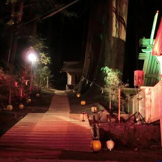 夕食前に、庭園を散策。ライトアップされたモミジ!