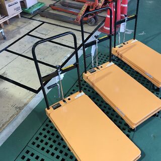 ・・・この運搬台車は、足ふみペダルで、テーブルが上下する優れものです。