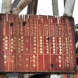 看板には、半鐘の「打鐘信号」が説明してありますが