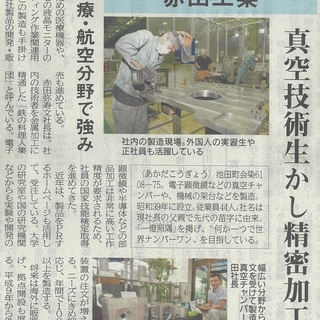 2019年8月30日 市民タイムス 赤田工業のことが紹介されました。 前の記事 次の記事 コメント コメントする コメントの投稿 コメントの返信 コメント (スタイル用のHTMLタグを使えます) 名前 電子メール URL サインイン情報を記憶